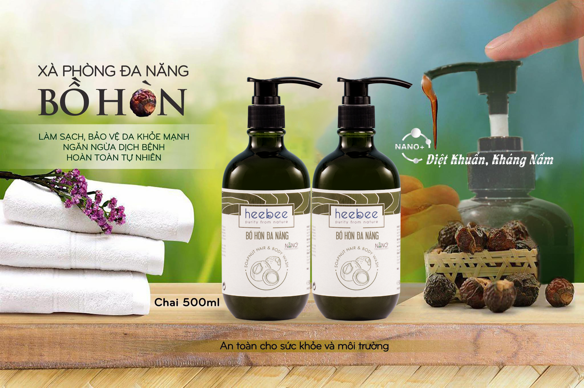 Heebee Bồ Hòn Đa Năng Kháng Khuẩn, Khỏe Da 500ml – Soapnut Hair & Body Wash